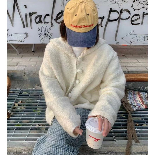 Solid Hooded Loose Knitted Cardigan