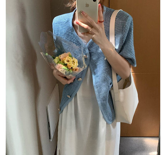 Short-Sleeve Pocket Detail Tweed Single-Breasted Jacket