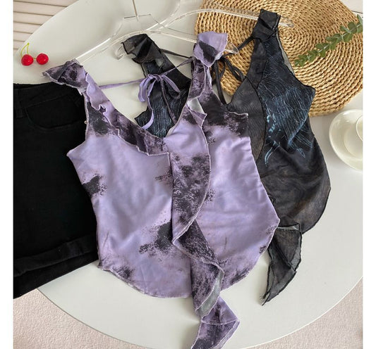 Traditional Chinese Wide-Sleeve Top / Sleeveless Mesh Dress / Set