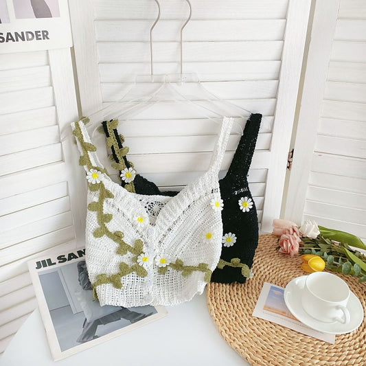 V-Neck Flower Knit Cami Top