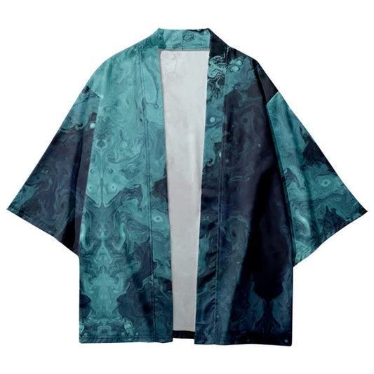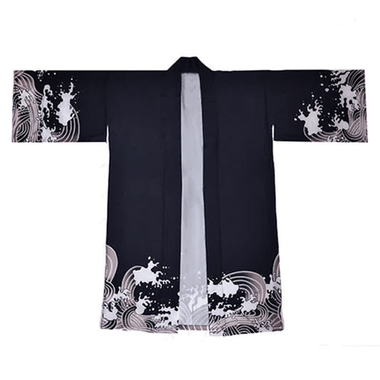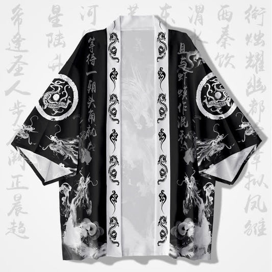 Elegant Black Short Cardigan Ink Painting Print Slip Dress