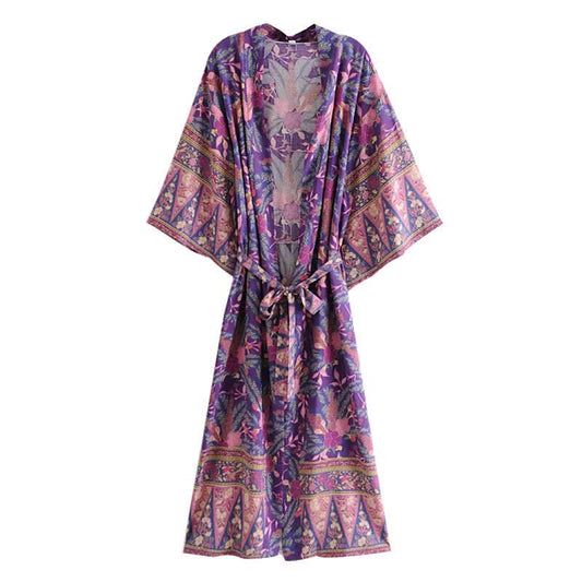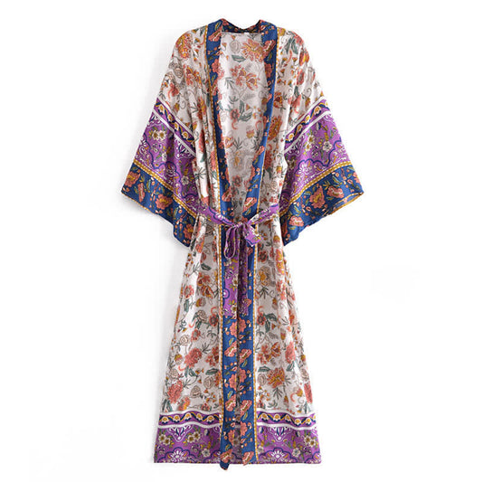 Boho Beach Print Belt Robe Long Cardigan Outerwear