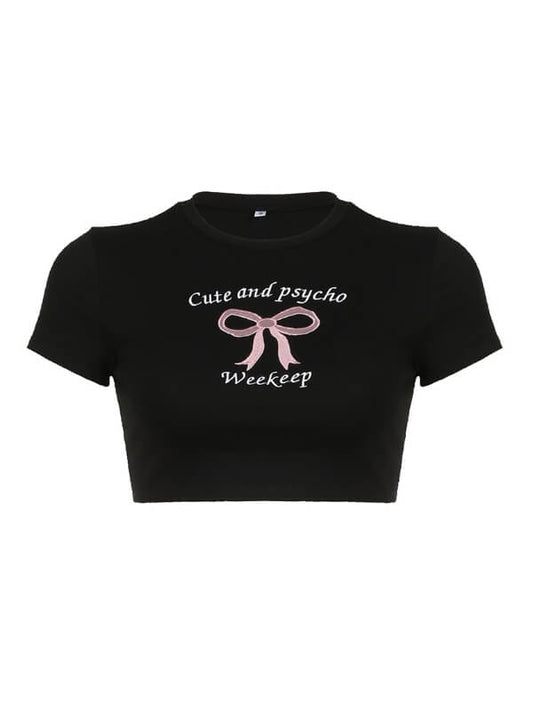Black Pink Bow Short Top
