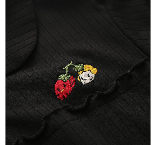 Robe trapèze brodée à col et manches courtes avec bord en laitue kk15