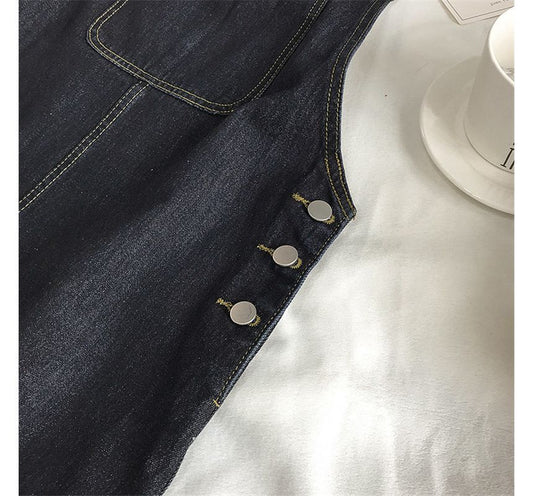 Robe salopette en denim mi-longue délavée kk22