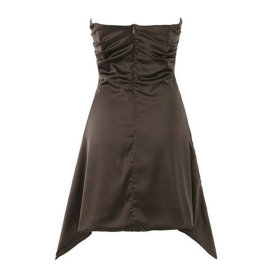 Robe moulante mi-longue en satin fendue uni à boucles et bretelles spaghetti aa34