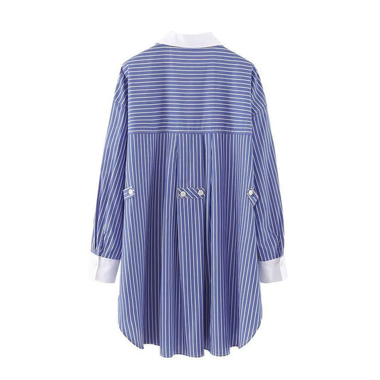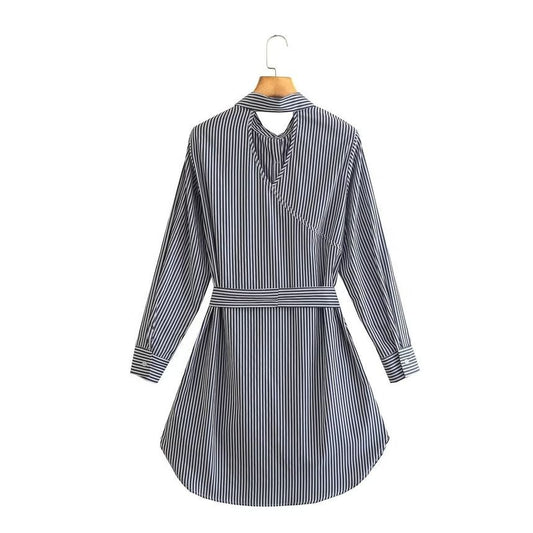 Mini robe trapèze à manches longues et col rond uni avec fermeture éclair et panneau transparent aa33