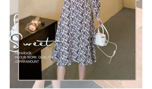 Robe trapèze mi-longue à imprimé floral, manches longues, col carré, aa20