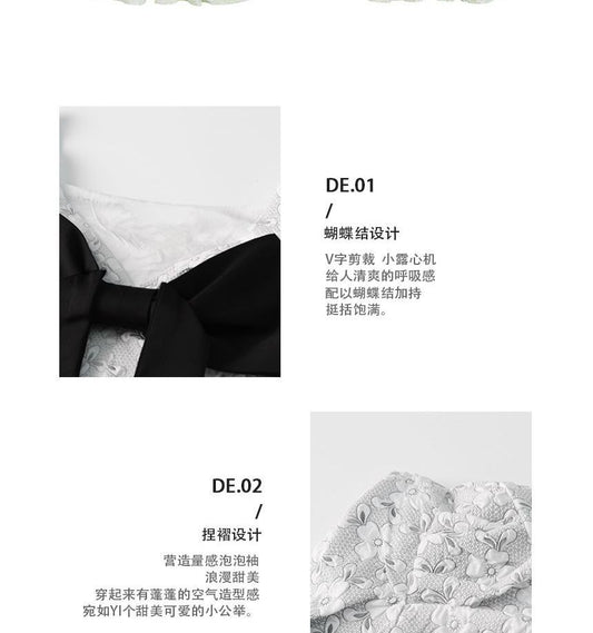 Mini robe trapèze florale à manches coudées et col carré aa26