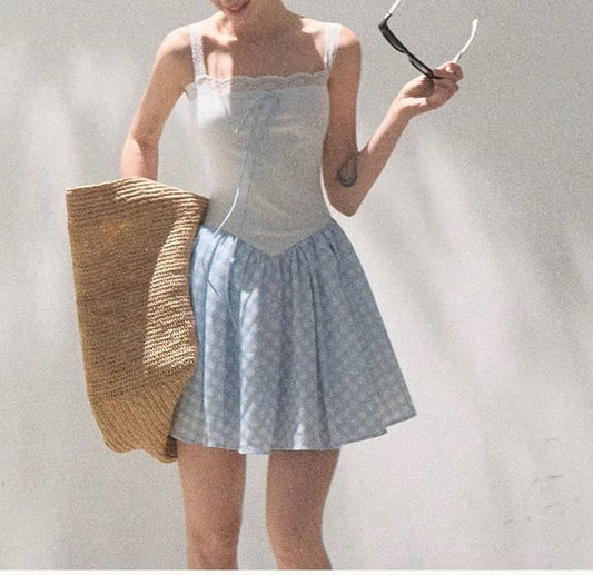 Spaghetti Strap Square Neck Plain Lace Trim A-Line Dress (Various Designs)