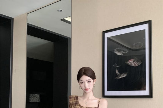Long Sleeve Cold Shoulder Plaid Ruffle Mini A-Line Dress / Belt / Band Collar Plain Faux Suede Zip Jacket / Set