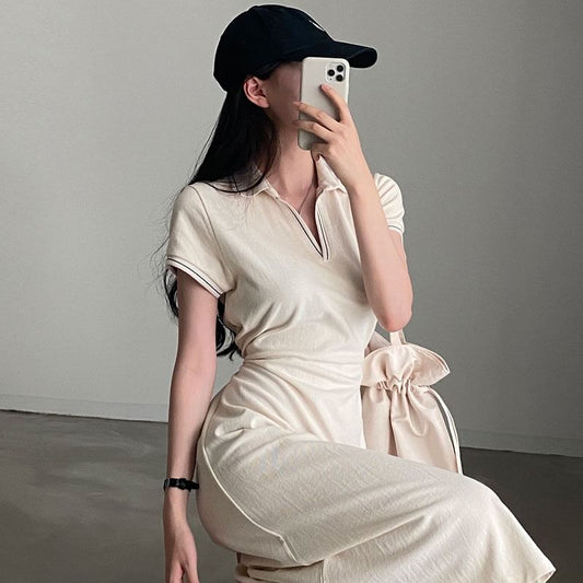 Plain Short-Sleeve Loose-Fit Shirtdress