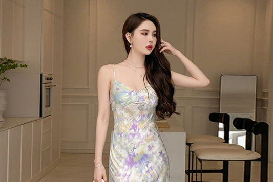 Spaghetti Strap V-Neck Floral Print Maxi Mermaid Dress