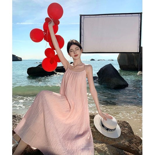 Spaghetti Strap Midi A-Line Eyelet Lace Dress