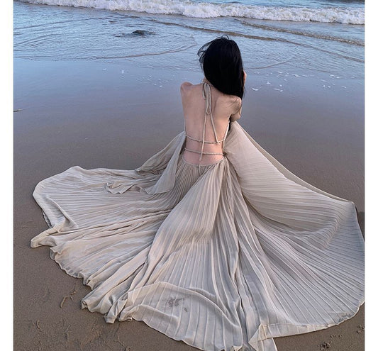 Halter Cowl Neck Plain Backless Maxi Sun Dress