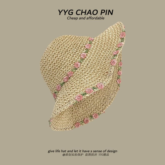 Straw Hat Floral Embroidered Sun