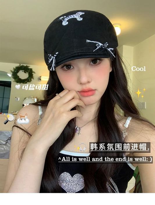 Dog Applique Flat Cap