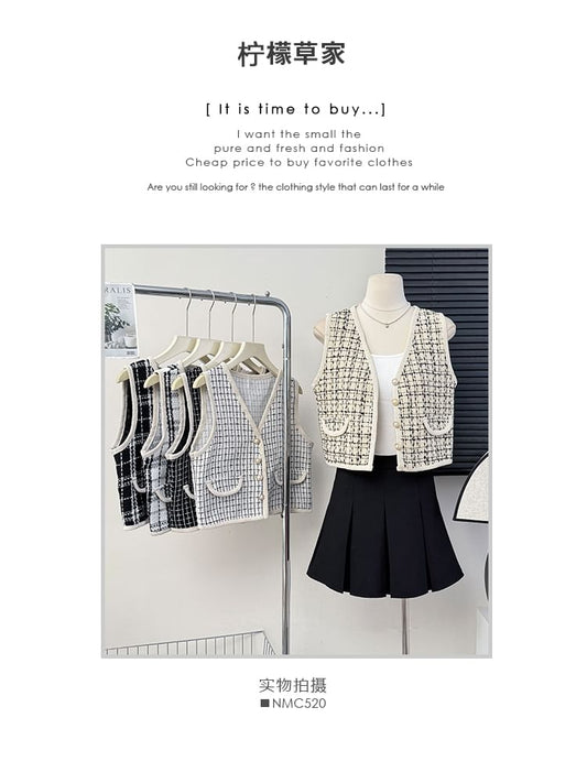 V-Neck Tweed Vest in 7 Colors
