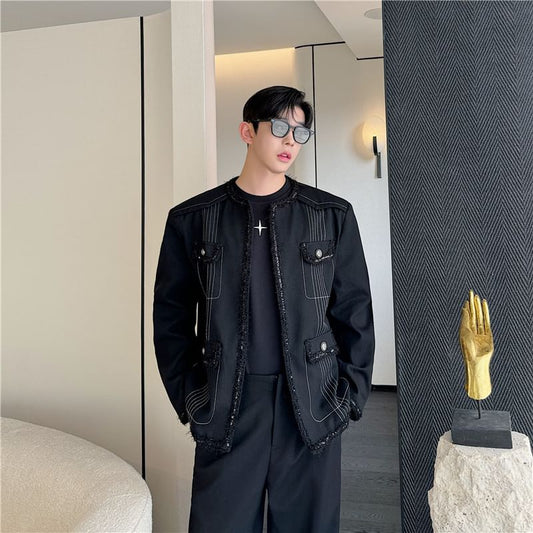 Tweed Trim Contrast Stitched Jacket