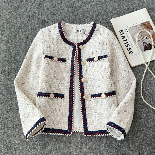 Long Sleeve Contrast Trim Button Up Tweed Jacket