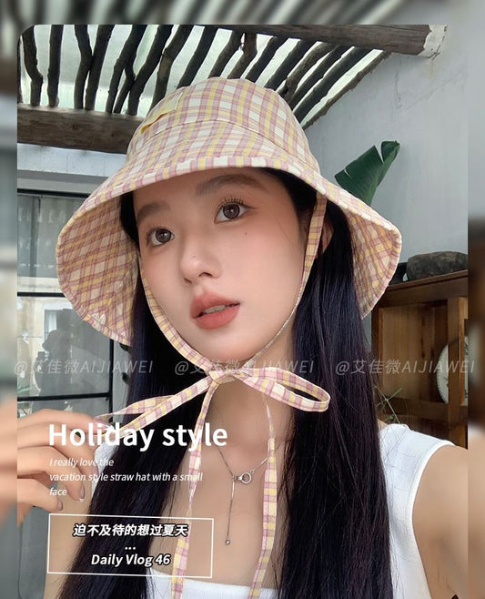 Lettering Applique Plaid Bucket Hat
