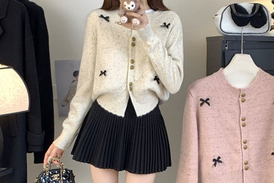 Crew Neck Bow Melange Cardigan