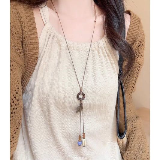 Pendant Hoop Cord Leaf Necklace