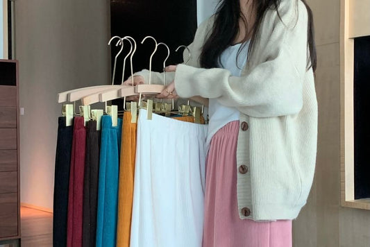 Long-Sleeve V-Neck Plain T-Shirt / Mid Rise Plain Mini A-Line Skirt