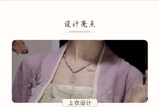 Tie Neck Hanfu Top / Mid Rise Print Maxi Skirt / Set