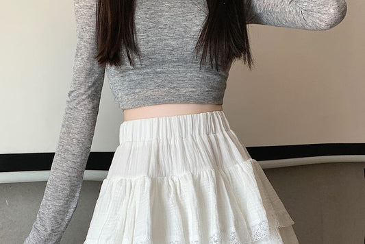 High Rise Plain Lace Trim Layered Mini A-Line Skirt