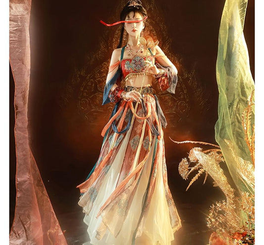 Set: Lolita Strapless Embroidered Crop Top + High Rise Midi A-Line Skirt + Arm Let + Scarf + Veil