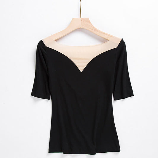Vintage Mesh Spilce T-Shirt Flowy Double Skirt