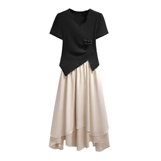 Elegant Buckle Irregular T-Shirt Layered Midi Skirt Set