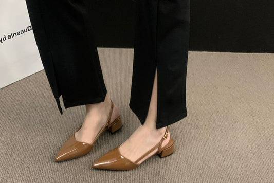 Pointy-Toe Plain Block Heel Slingback Sandals