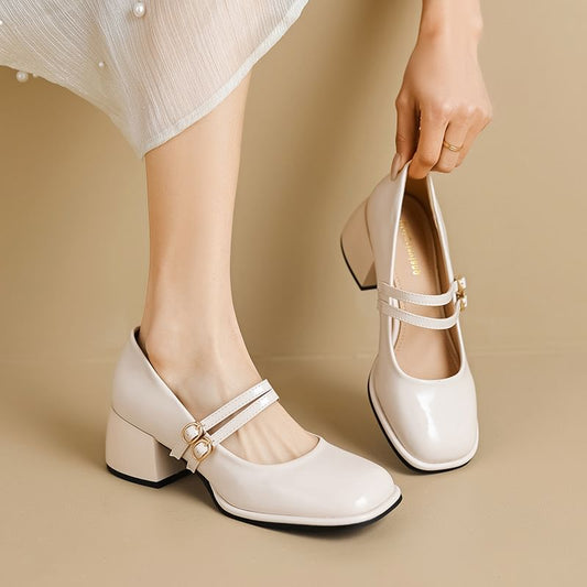 Platform Plain Buckled Faux Leather Mary Jane Shoes