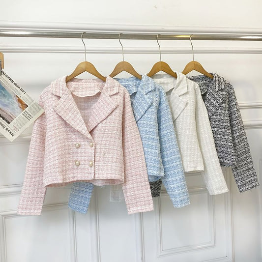 Round Neck Melange Contrast Trim Tweed Button Jacket