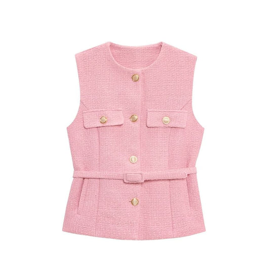 Round Neck Tweed Button Vest