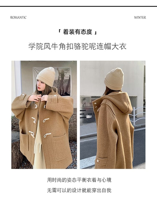 Hooded Toggle Plain Long Coat