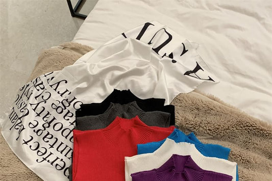 Crop Knit Neck Mock Plain Top Ribbed Sleeveless