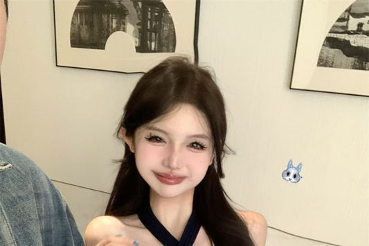 Knit Neck Top Crop Ribbed Halter Plain Camisole