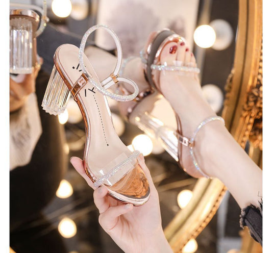 Rhinestone Chunky-Heel Sandals Ankle-Strap