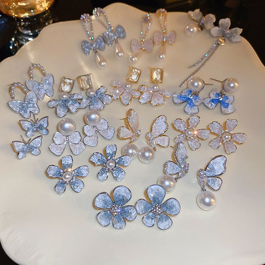 / Floral Alloy Pearl Designs) Faux Earring (Various Bow
