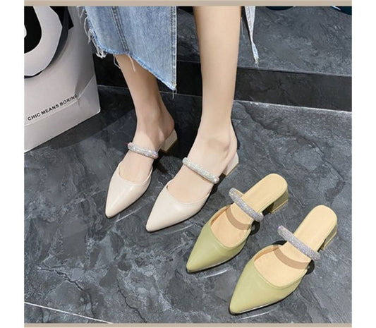 Sandals Rhinestone Chunky Heel Slide