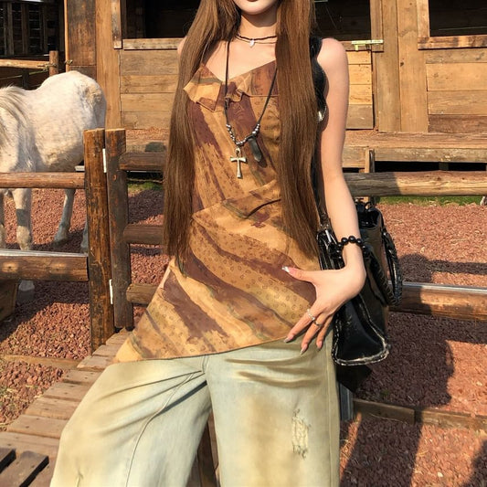 Printed Top Ruffled Asymmetrical Camisole