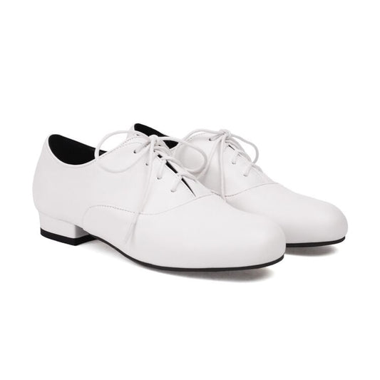 Faux Leather Shoes Chunky Lace-Up Plain Heel