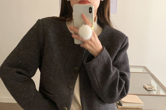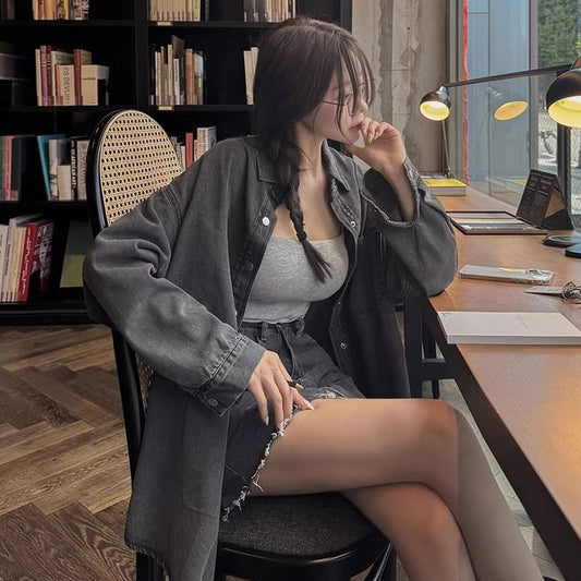 Long-Sleeve Plain Pocket Detail Denim Shirt