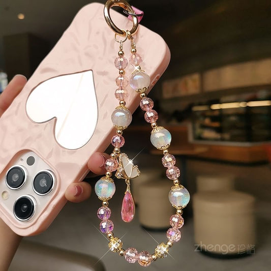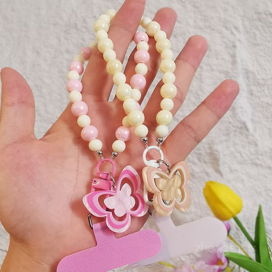 Butterfly Faux Crystal Phone Strap with Lanyard Pad