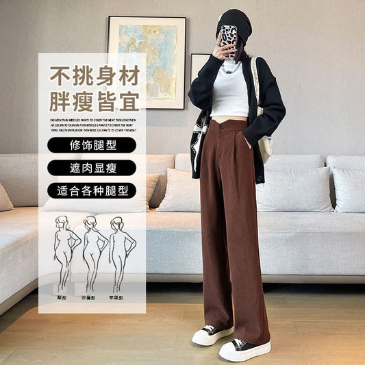 High Rise Plain Corduroy Wide Leg Slacks