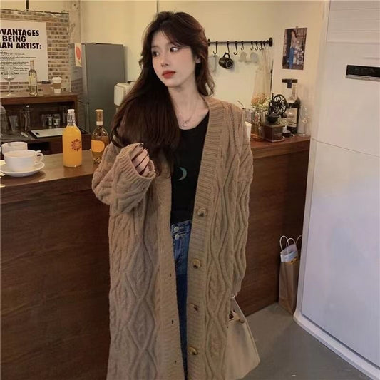 Cable-Knit V-Neck Long Cardigan
