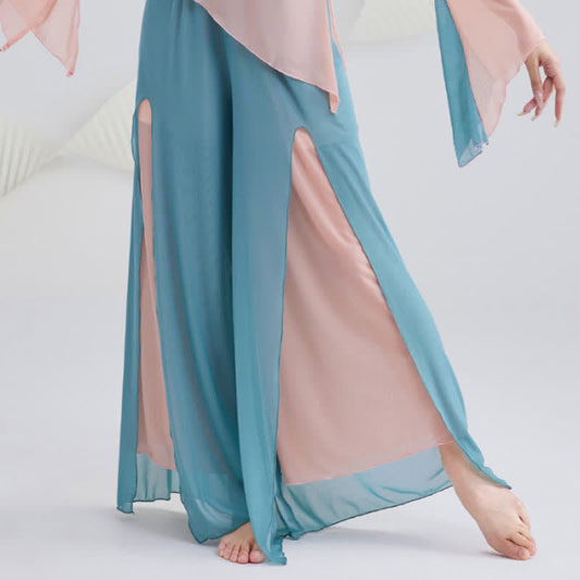Vintage Colorblock Flared Sleeve Shirt Split Wide Leg Pants